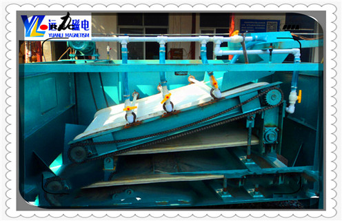 2、磁選機的磁系,采用優質鐵氧體材料或與稀土磁鋼復合而成。
