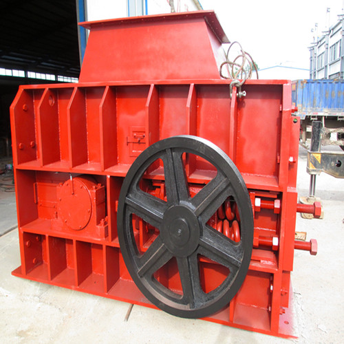 被破碎物料經給料口落入兩輥之間依靠摩擦力的作用被帶入輥子之間,進行擠壓破碎,成品物料自下部落下。